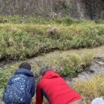 川を歩きながら、ビオトープの土台となる植物や土を自分たちの手で採集します。「これは何だろう?」をたくさん見つけよう!
